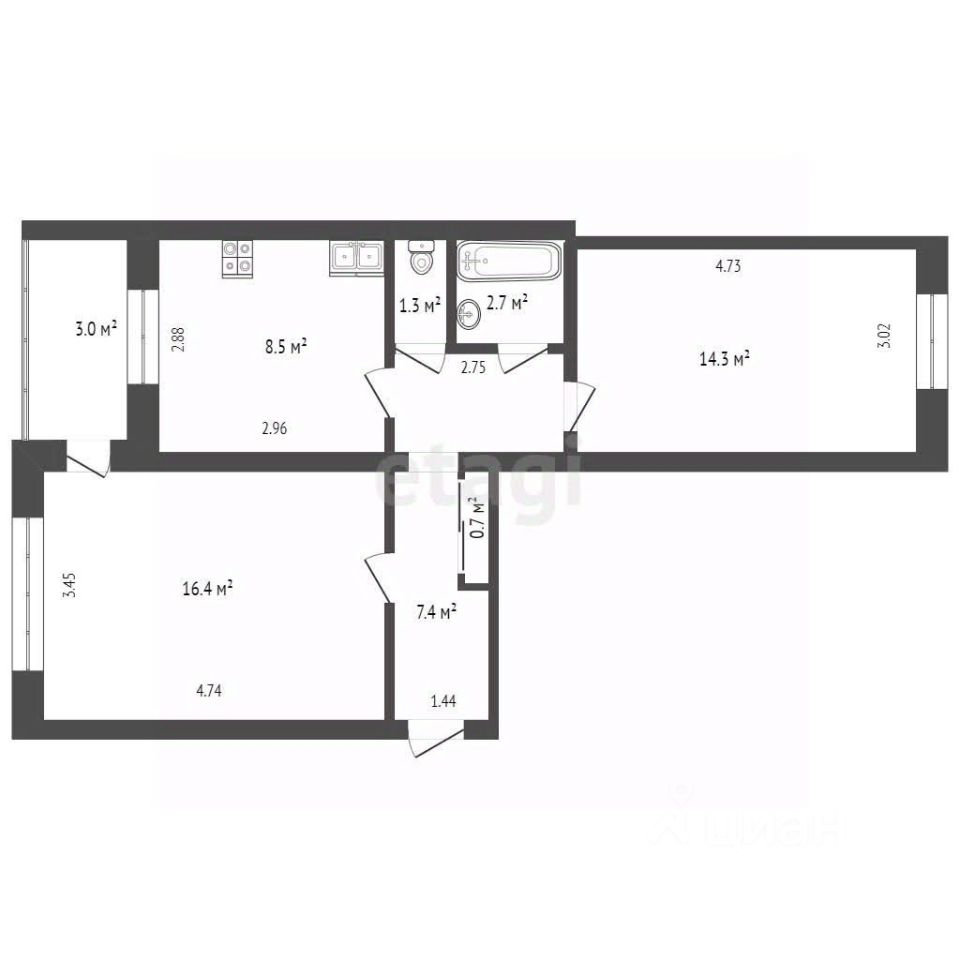 53,3 м²