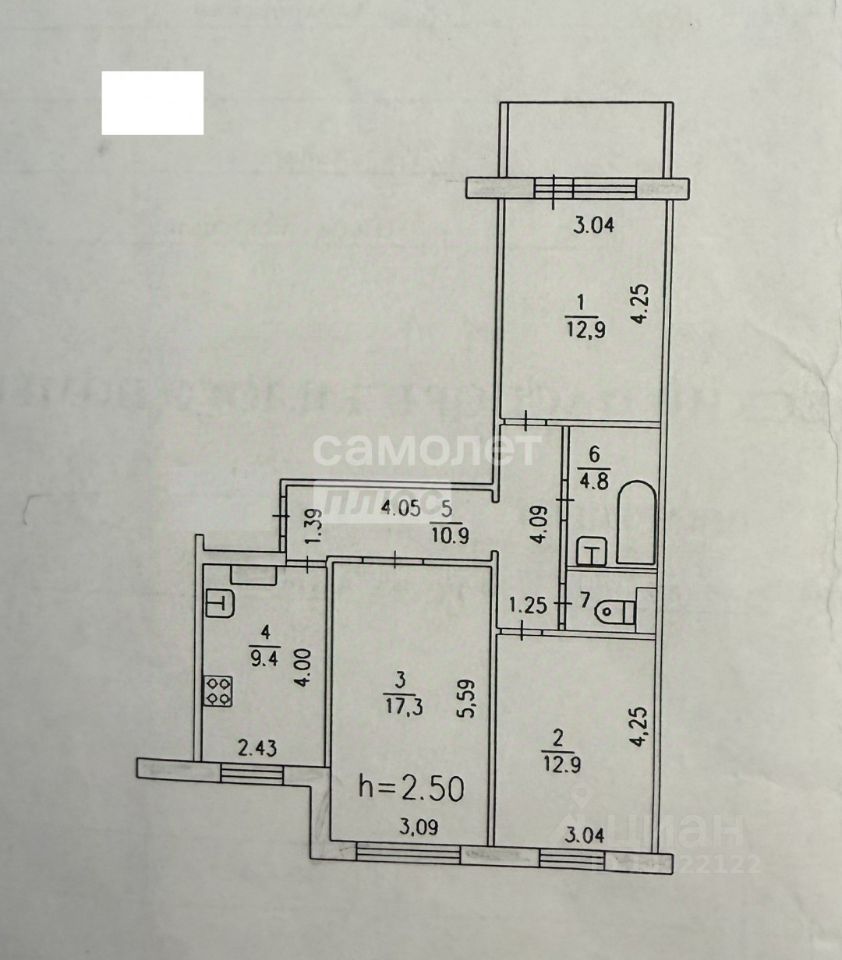 - 3 раздельные комнаты (13; 13; и 17,5м2);
