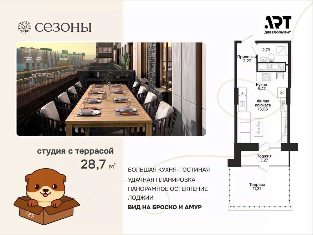 Зимние скидки! Выгода до 1,7 миллиона рублей. Квартира 28,67 м2 свободной планировки с видами на Броско и собственной террасой.