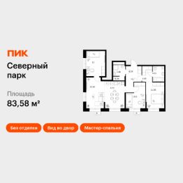 Продаётся 3-комн. квартира площадью 83,58 кв.м на 4 этаже 10 этажного дома (Корпус 11, Секция 2) проекта ПИК Северный парк. Светлый просторный подъезд на уровне земли, функциональная планировка, большие окна, без отделки.