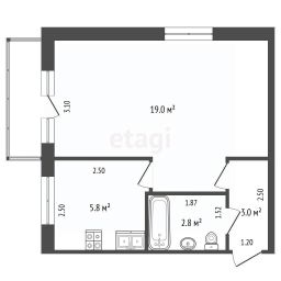 Уютная и светлая квартира площадью 30,6 м² расположена на 2 этаже 5-этажного панельного дома.