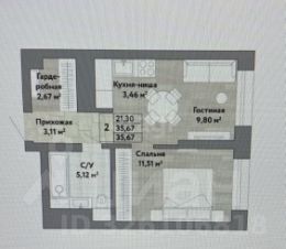 Отличная евро-двушка 35,67кв.м. 10 этаж .Башня интеллект!