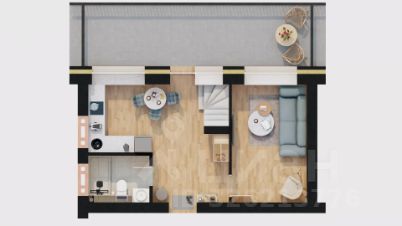 площадь нижнего уровня 32,82 кв м (кухня- гостиная + санузел)