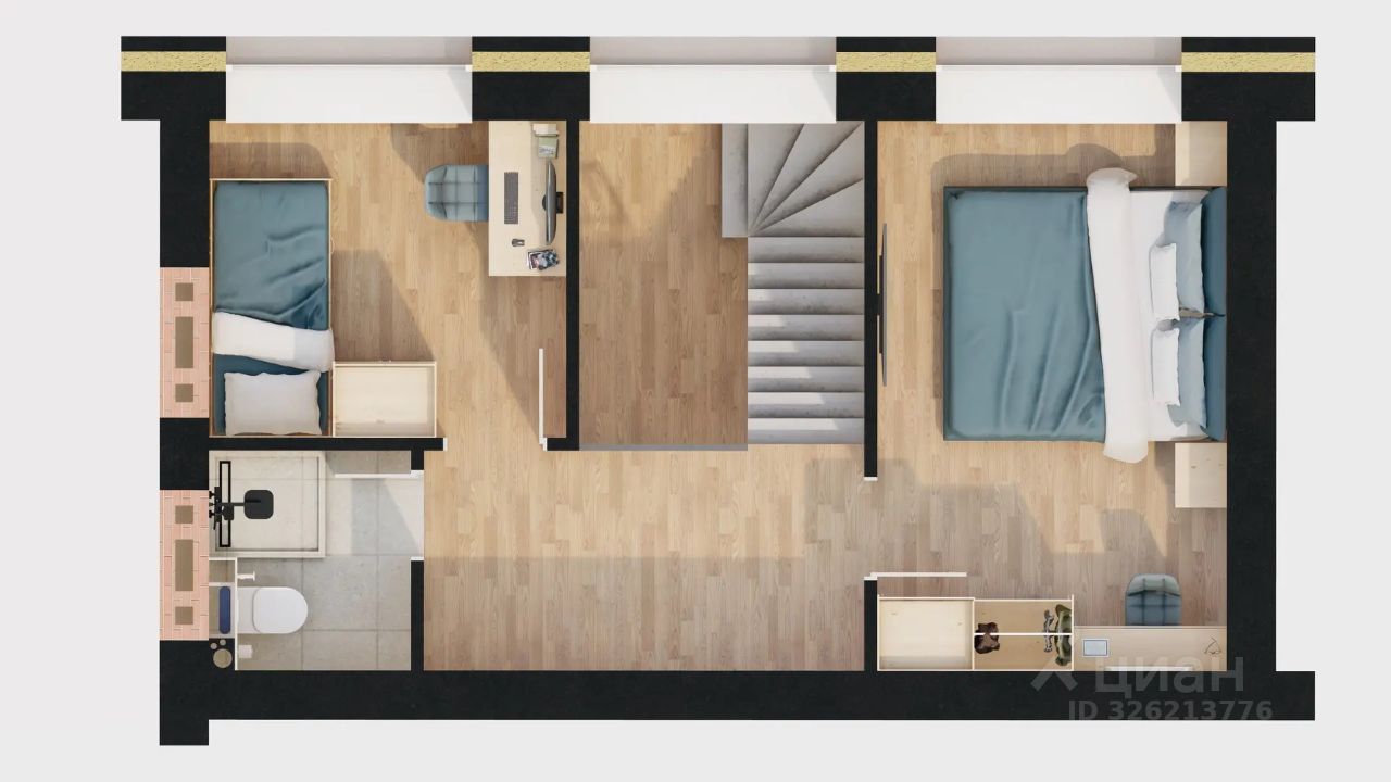 площадь верхнего уровня 30,3 кв м (можете сделать 2 спальни и второй санузел!)