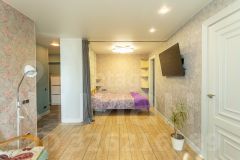 В квартире заменена вся проводка, выполнен качественный евроремонт. Установлены пластиковые окна, балкон застеклен. За счет своей освещенности квартира очень теплая. В квартире устроен теплый электрический пол в коридоре, ванной и кухне. В квартире есть кондиционер. Есть огромная кладовая комната где можно хранить свои вещи.