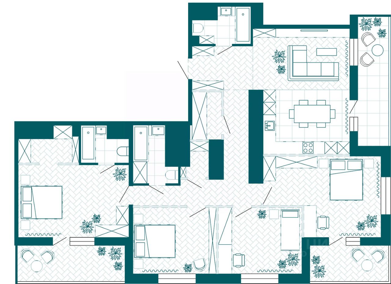 Квартира свободной планировки, 143,53 м²