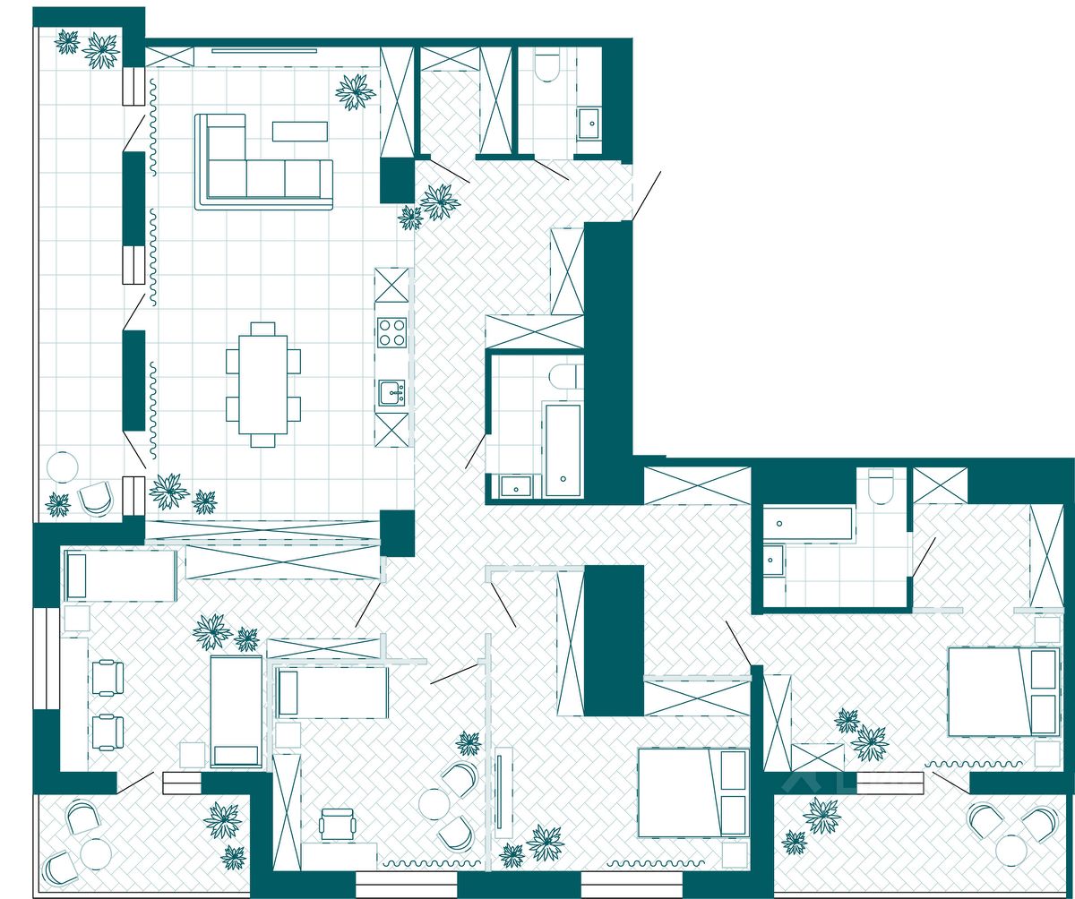 Квартира свободной планировки, 169,36 м²