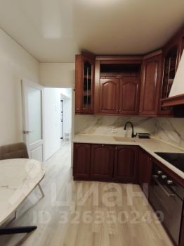 В кухне мебель из массива. Плита индукционная. Фартук керамогранит. Стол раздвижной из лазурита. Холодильник, микроволновка, телевизор.
