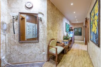 В квартире выполнен евроремонт с использованием качественных материалов. Стены идеально выведены, и их оформление выполнено с использованием элегантных итальянских обоев. В коридоре отделка декоративной штукатуркой. Полы покрыты высококачественным ламинатом. Фасад кухни выполнен из натурального дерева, что добавляет особый шарм этой квартире. Ванная комната оборудована современной сантехникой и покрыта итальянским кафелем. Установлен бойлер.