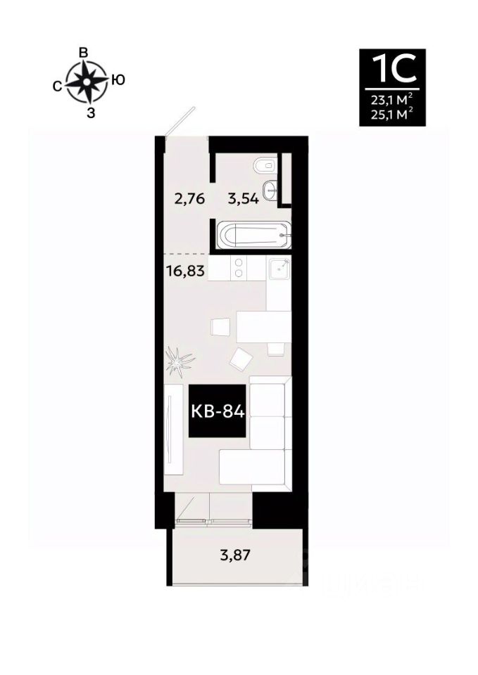 Общая площадь25,1 м²