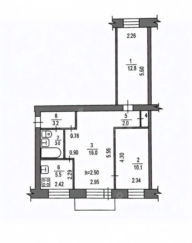 Ленинградская, 34 | 2/5 эт. | 55,1 м²