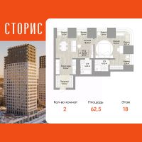 Продается 2-комн. квартира с европланировкой в ЖК "Сторис" на 18 этаже. Квартира без отделки, после оформления собственности можно делать ремонт. Общая площадь: 62.5 кв.м., жилая: 36.3 кв.м., общая площадь гостиной-столовой с кухонной зоной: 26.62 кв.м. Европланировка, кухня и гостиная объединены в одно просторное помещение. Квартира угловая, идеально подойдет любителям тишины и панорамных видов. В квартире три балкона, два совмещенных санузла. Высота потолков 2.9 м.