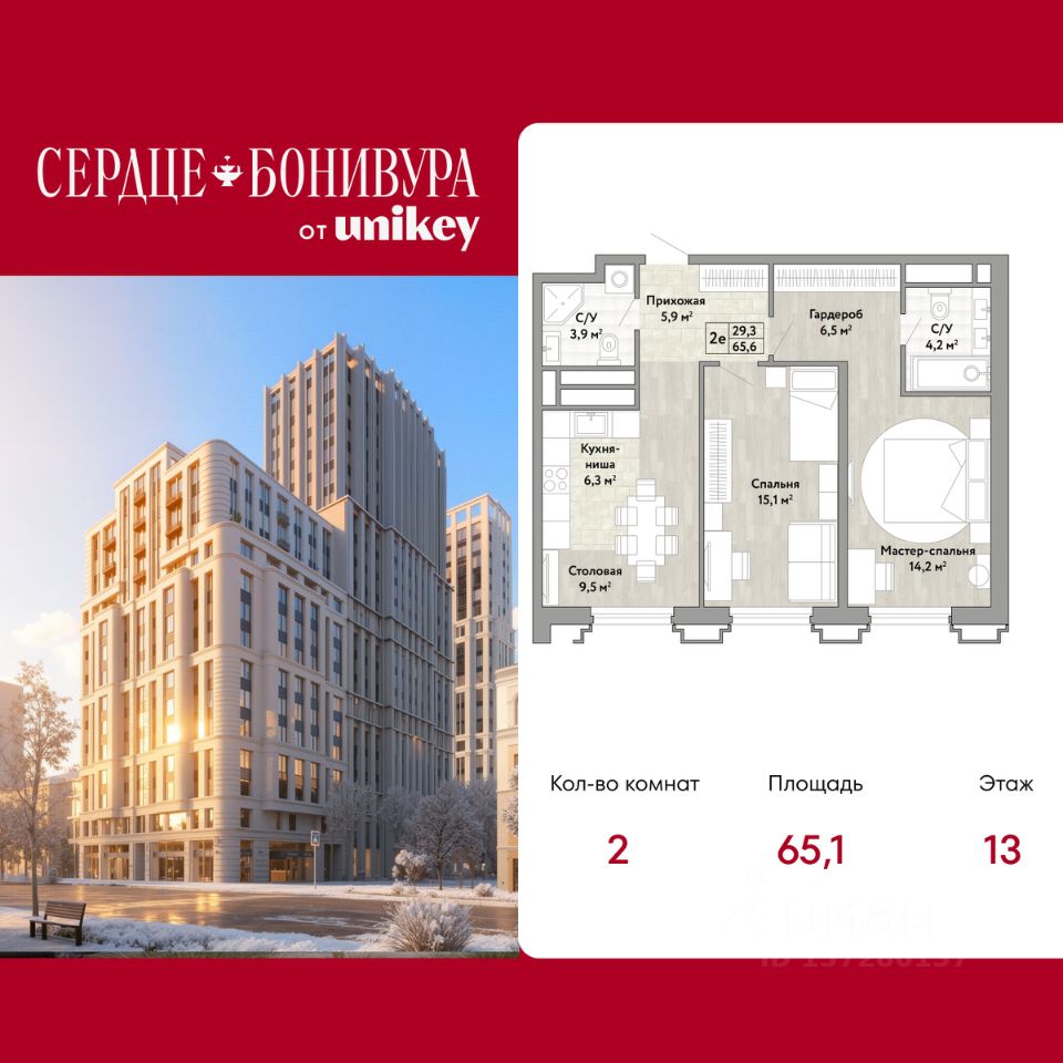 Продается 2-комн. квартира от застройщика в ЖК "Сердце Бонивура" на 13 этаже. Квартира без отделки, полностью готова к чистовой отделке и дальнейшему ремонту. Общая площадь: 65.1 кв.м., жилая: 29.4 кв.м., площадь просторной кухни-столовой: 15.2 кв.м. Комнаты изолированные, все окна выходят на одну сторону. В квартире два совмещенных санузла. Высота потолков 2.85 м.