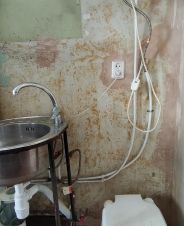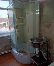 Холодная вода: Зимой - привозная (водоканал развозит воду водовозкой) или шлангом можно накачать с колонки (50 м) в ёмкость 1000 куб. Из емкости 1000 куб., вода подведена к раковине и душ кабине.