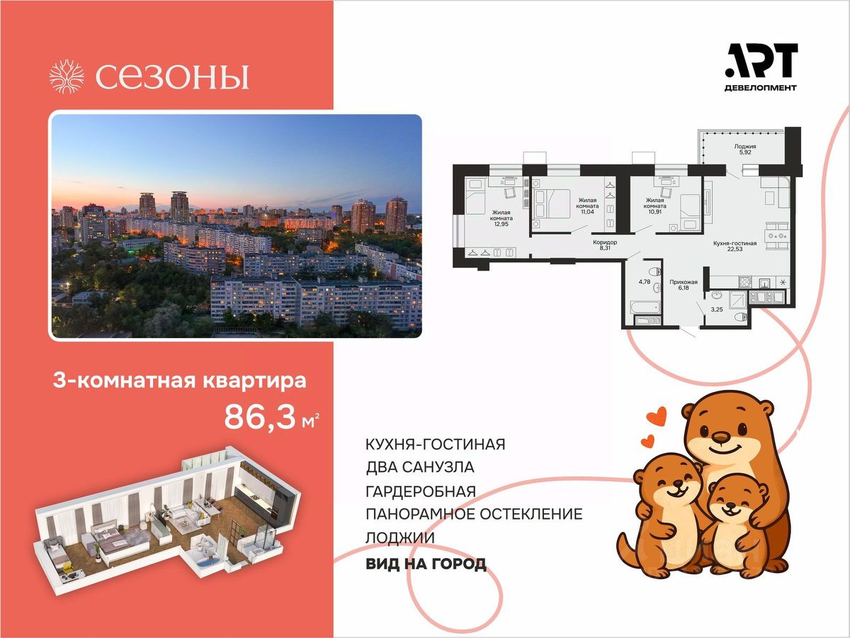 Зимние скидки! Выгода до 1,7 миллиона рублей. Квартира 87,31 м2 свободной планировки с видами на город.
