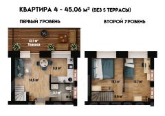 площадь верхнего уровня - 18,76 кв м (Спальня + гардеробная)