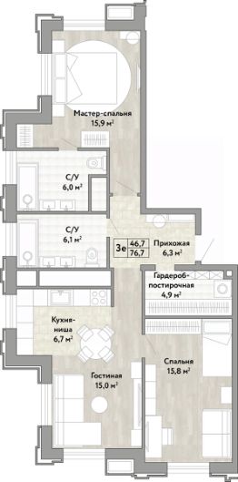 3-комн. квартира с европланировкой в ЖК "Сердце Бонивура" на 5 этаже. Квартира без отделки, новый владелец может сделать ремонт по своему проекту. Общая площадь: 76.6 кв.м., жилая: 46.7 кв.м., суммарная площадь гостиной-столовой с кухонной зоной: 21.7 кв.м. Европланировка, площадь комнат позволяет разместить в них все необходимое, а в просторной кухне-гостиной удобно как готовить, так и отдыхать. Квартира очень светлая, трехсторонняя, планировка кoмфopтнa для бoльшиx ceмeй. В квартире два совмещенных санузла. Высота потолков 2.85 м.