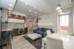 - Просторная кухня-гостиная 20+ м² с кухонным гарнитуром под заказ и с техникой премиального класса.