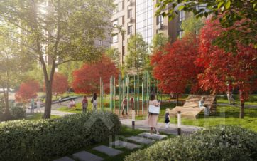 Дети постарше лазают по современному игровому комплексу или катаются на памп-треке — отвлекаясь от гаджетов и не выходя за территорию ЖК.