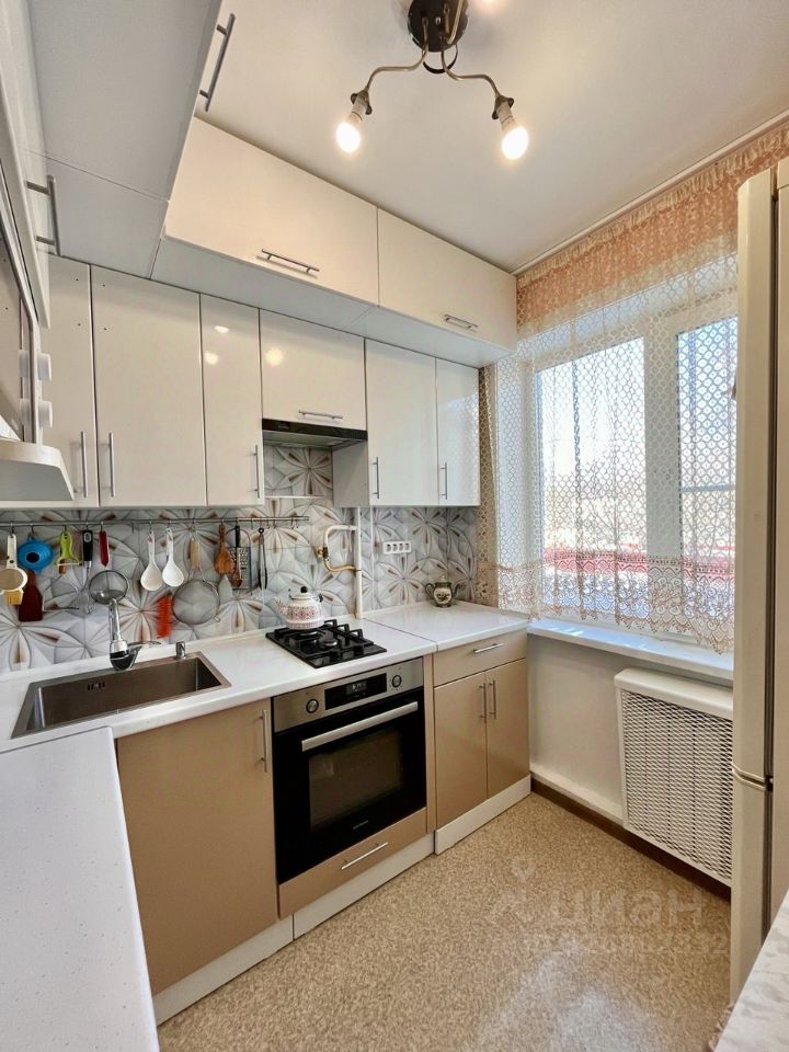Шкаф-купе, кухонный гарнитур с встроенной техникой, стиральная машинка и платяной шкаф в спальной комнате остаются новым владельцам.