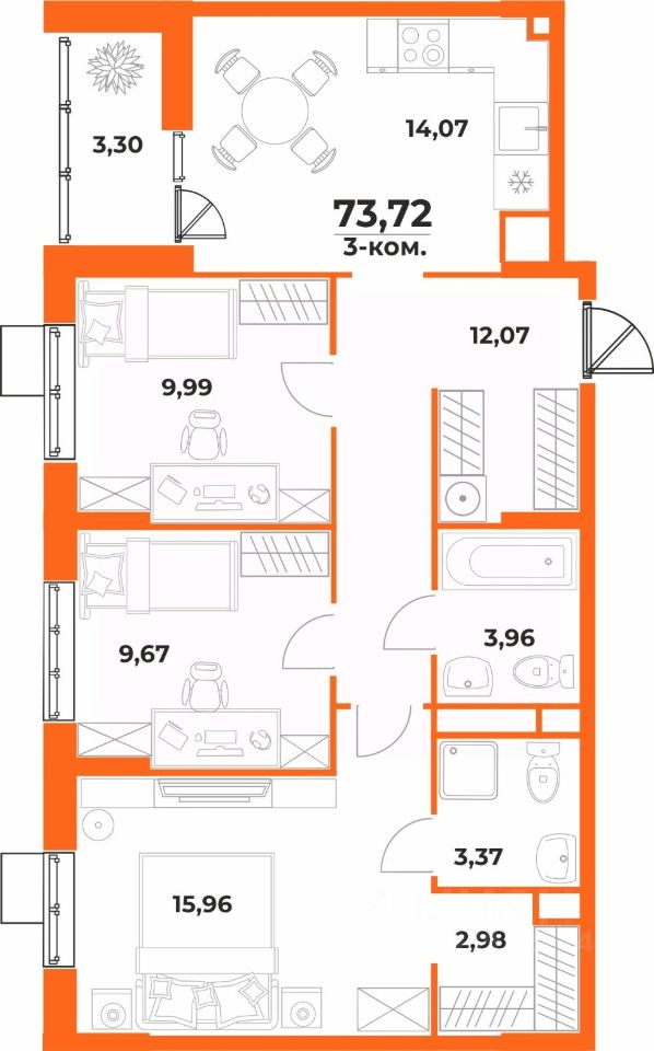 Общая площадь73,72 м²