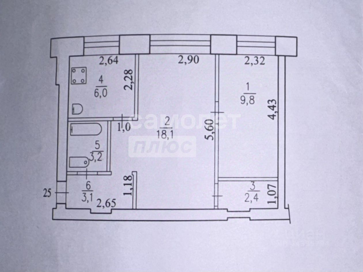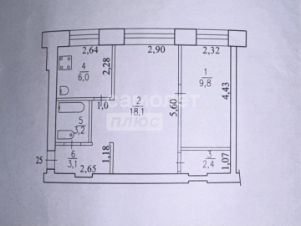 В продаже 2-комнатная квартира площадью 42.6 м², расположенная в кирпичном доме.