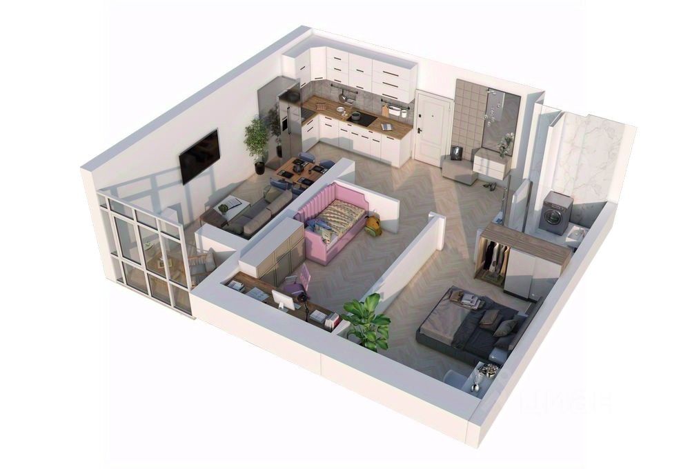 Просторная светлая 2-комнaтная кваpтира с большой кухней-гостиной и комфортным санузлом. Предусмотрено много мест хранения. Лоджия с панорамным остеклением как персональная зона отдыха или работы