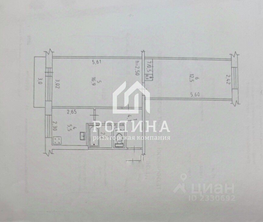 Общая площадь 43.1 м/2, из них 5,5 м/2 составляет кухня.