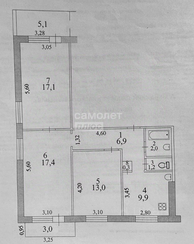 1 лоджия, 1 балкон