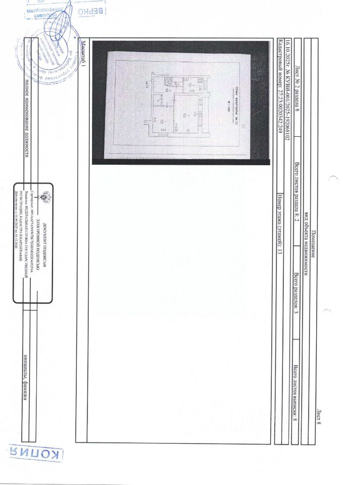 Квартира площадью 48,4 кв. м, кадастровый номер 27:23:0020342:249. Местоположение: г. Хабаровска, ул. Калинина, д. 138, кв. 73. Регистрационный номер 834/А. Собственник — Шамсутдинова И.В. Обременение - договор залога. Начальная цена 4504150 руб. (НДС не облагается). Задаток 225207,50 руб. Шаг аукциона 45041,50 руб.(Отдел судебных приставов по Кировскому району г. Хабаровска89249265013,381209 Паньков А.В.)