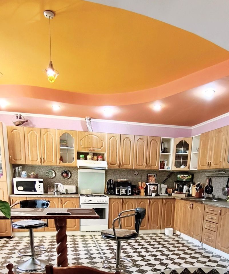 ??????? Сердце дома — большая кухня - гостиная 30 м2. Здесь можно готовить с удовольствием (кухня оборудована на заказ с отличной фурнитурой) и пить чай с видом на любимый город, не толкаясь локтями. Поверьте, это действительно кухня мечты, где помещается и огромный холодильник, и обеденный стол, и все необходимое.