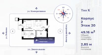 Арт. 132086466 Продам 2-х комнатную квартиру в "ЖК Дежнев" в Центральном районе по ул. Дикопольцева.