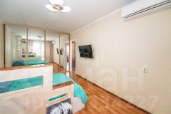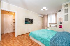 Комната: Большой встроенный шкаф купе (ширина 3 метра), декоративная перегородка для зонирования, кондиционер.