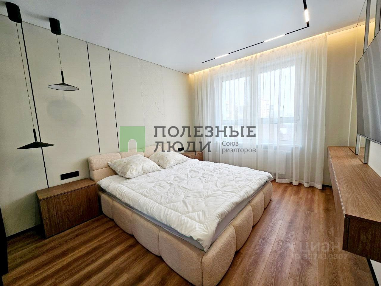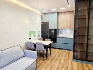 Кухня гостиная с зонированием пространства. Спальня с гардеробной комнатой.