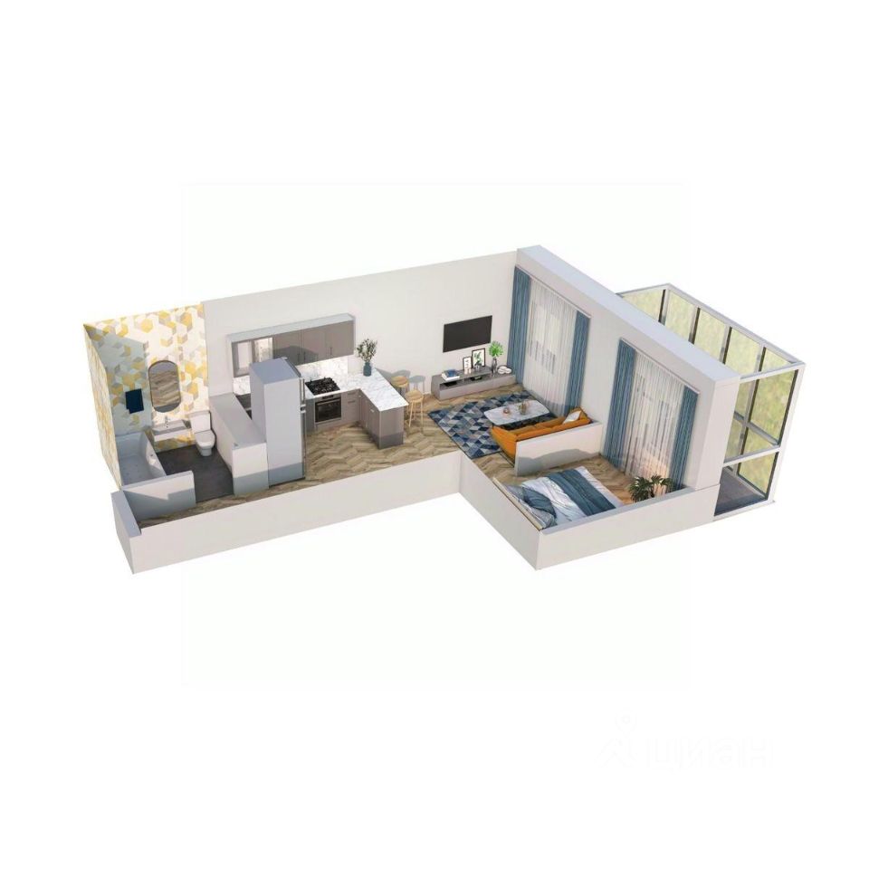 Комфортная 1-комнатная квартира 35 м². Здесь отдельная спальня, кухня-гостиная, санузел и балкон с панорамным видом, который можно оборудовать как зону отдыха или рабочее место.