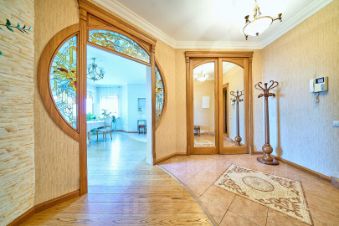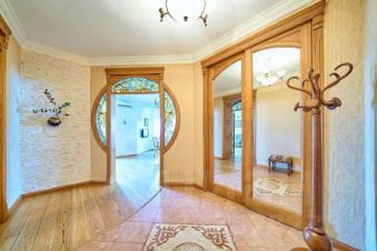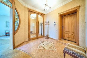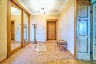 Центральным элементом служит гостиная с камином, портал которого выполнен из итальянского мрамора. Из гостиной предусмотрен выход в мастер-спальню с утепленной лоджией, детскую и кабинет.