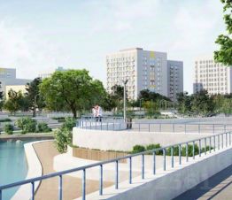 В районе обеспечены дворовые пространства без машин. Места для временной парковки расположены по периметру квартальных модулей снаружи. А вдоль всего района спроектированы многоуровневые паркинги.