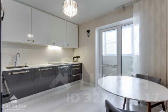 Кухонная зона с встроенным кухонным гарнитуром выполнена на заказ встроенной высококачественной техникой с выходом на лоджию.