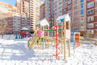 Хочется отметить просторный двор, с детскими игровыми площадками, с прогулочной зоной, по двору насажены красивые цветы, много зелени.