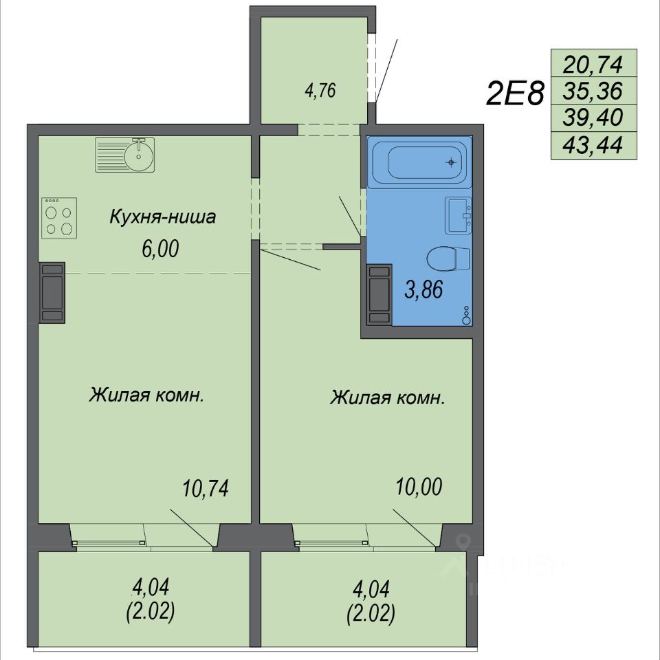 43,44 м²