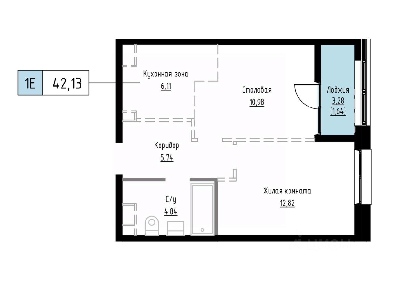 Общая площадь42,13 м²