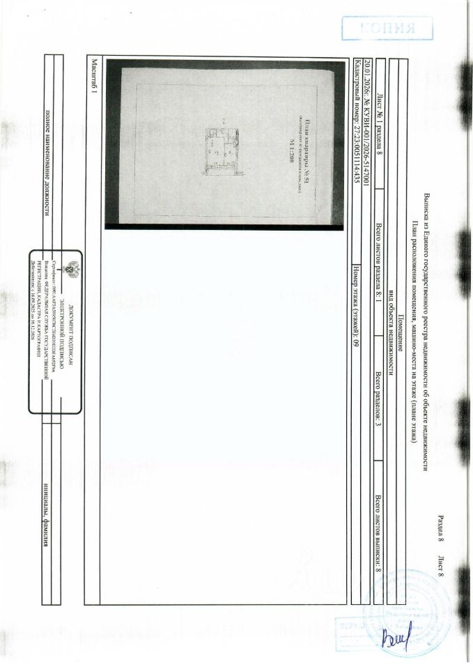 Квартира площадью 40,5 кв. м, кадастровый номер 27:23:0051114:435, местонахождение: Хабаровский край, г. Хабаровск, ул. Рокоссовского, д. 36, кв. 51. Собственник - Казанцева С.А. Обременение - договор залога. Регистрационный номер 46/А. Снижение цены на 15%. Начальная цена - 3519000 руб. (НДС не облагается). Задаток - 175950 руб. Шаг - 35190 руб. (ОСП по Индустриальному р-ну, тел. 89249265016, 89243159246, (4212)38-12-27 судебный пристав-исполнитель Вепрова К.С.).