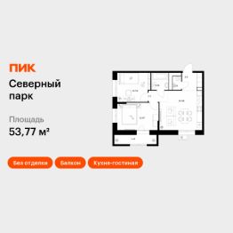 Продаётся 2-комн. квартира площадью 53,77 кв.м на 8 этаже 10 этажного дома (Корпус 11, Секция 1) проекта ПИК Северный парк. Светлый просторный подъезд на уровне земли, функциональная планировка, большие окна, без отделки.