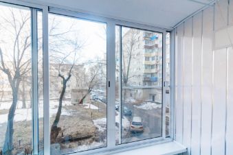 На лоджии выполнено остекление и полная отделка, выход с полным остеклением по типу Французское окно.