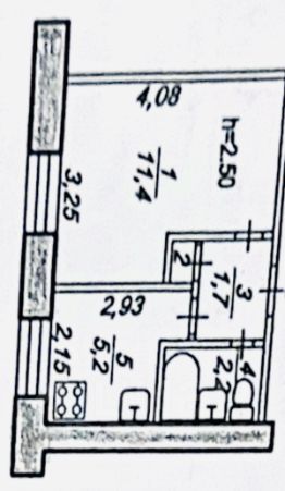 Общая площадь 21 кв. м включает отдельную кухню 5,2 кв. м, жилую комнату