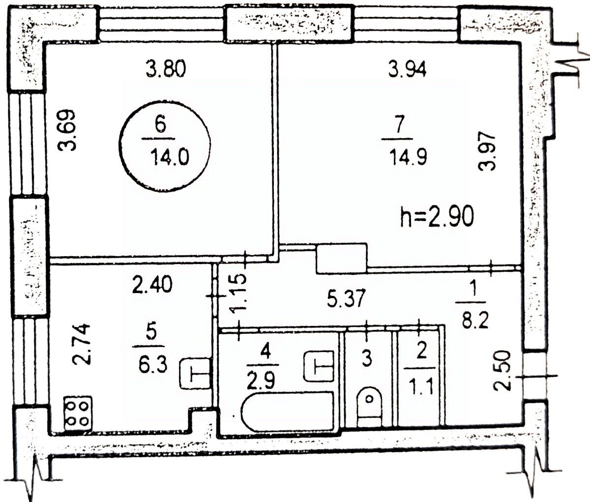 Это настоящая "сталинка" с высокими потолками и железобетонными перекрытиями — залог надёжности и долговечности.