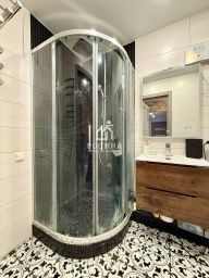 - С/у и ванная комната облицованы стильной кафельной плиткой.