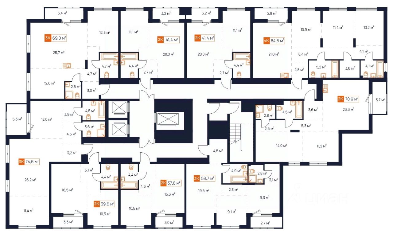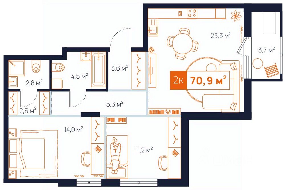 70,9 м²