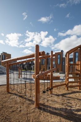 * общее благоустроенное пространство с кафе, детской и спортивной площадками