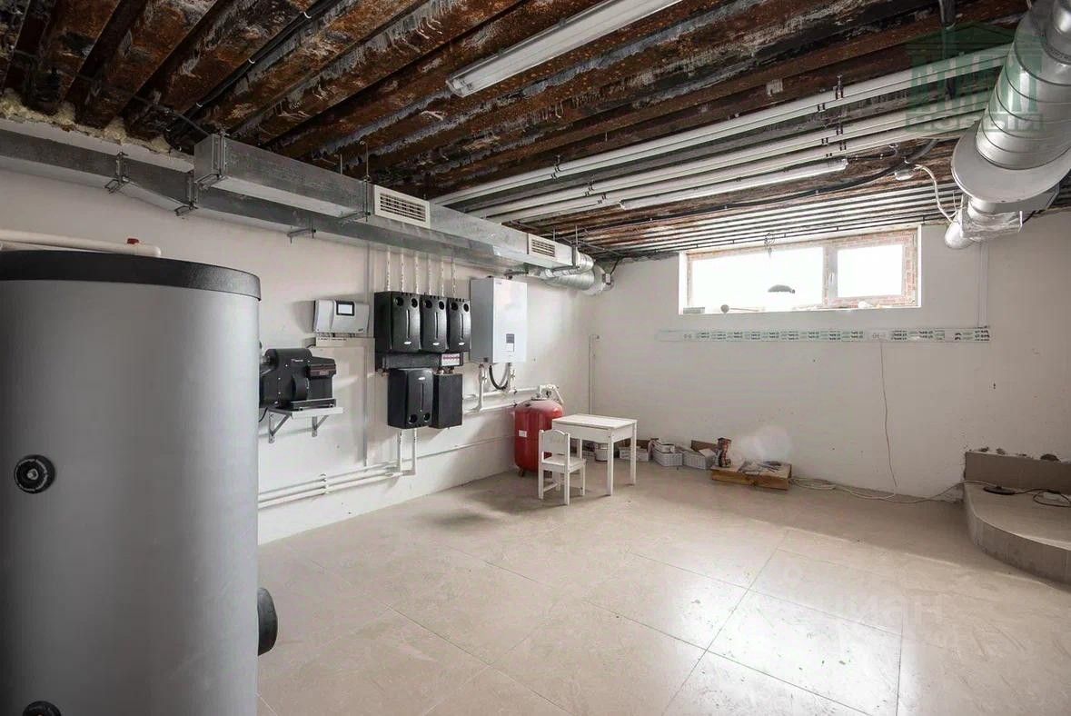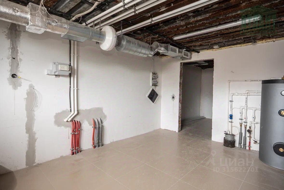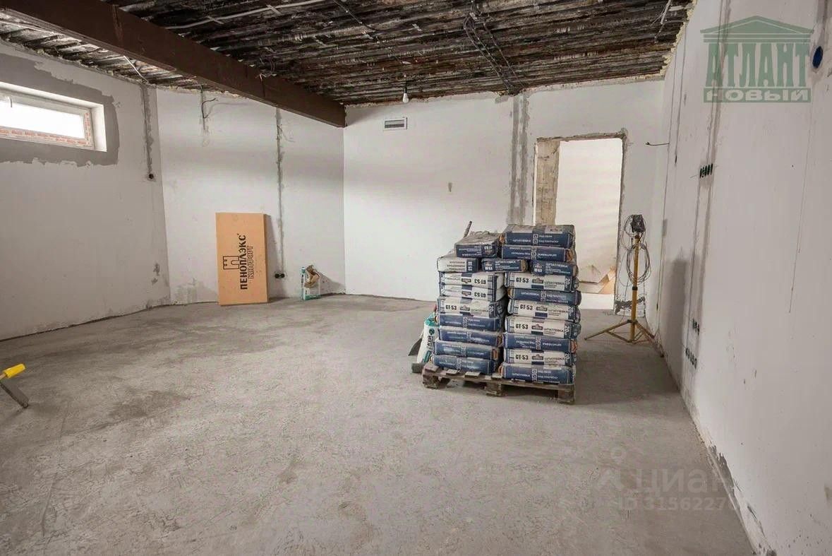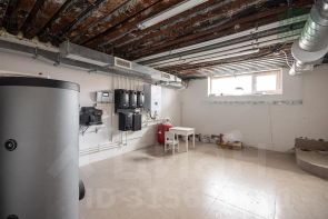 Цокольный этаж (площадь 109,8 кв.м) представляет собой ж/бетонные монолитные стены и перекрытия, состоит из трех комнат, одна из которых техническая, двух подсобных помещений (коридоры) и совмещенного санузла. Толщина стен 360 мм., утеплены снаружи экструдированным водостойким полистеролом. Входная группа цокольного этажа, находящаяся с тыльной стороны здания, представляет собой террасу размером: длинна 12 м, ширина 3 м, с пятью архитектурными колонами, которые выполнены из толстостенных чугунных труб (диаметр 220 мм, толщина стенки 12 мм), заполненных бетоном. Данные колонны, отделанные также панелями "Компетент", удерживают лоджию первого этажа такого же размера, как и терраса цоколя.